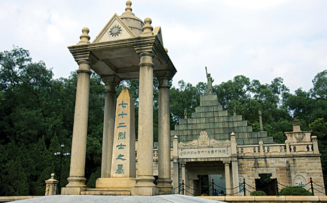 In 1912 , the Guangzhou Military Government allocated 100,000 yuan to build a martyrs' cemetery at the original cemetery. Sun Yat-sen personally planted green pines and wrote the four characters " Haoran Zhengqi " for the cemetery. The cemetery was expanded several times afterwards. The cemetery contains 86 martyrs whose names and deeds can be verified.