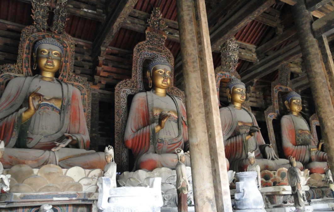 奉国寺,俗称大佛寺,始建于辽开泰九年(1020年),是中国国内现存辽代三大寺院之一。现存有重建的外山门、清朝时期重建的内山门、牌楼、钟亭、碑亭、天王殿以及辽代时期保存至今的大雄殿等建筑。奉国寺的大雄殿、七佛塑像和建筑彩画三者并称“奉国寺三绝”,是集考古、绘画、雕塑等文化价值于一体的皇家寺院,建筑方法代表了11世纪中国建筑的最高水平,并为日后北京故宫的修造提供了成熟的建构方法。