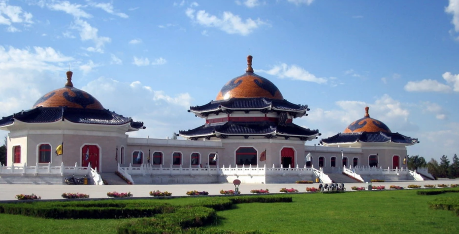 成吉思汗陵,史称“成吉思汗八白室”,是由八座可以移动的毡帐组成,13世纪初建成后辗转大漠南北,15世纪中叶驻牧鄂尔多斯,清初移奉伊金霍洛旗巴音昌呼格草原,1954年建成雄伟壮丽的成吉思汗陵园。
