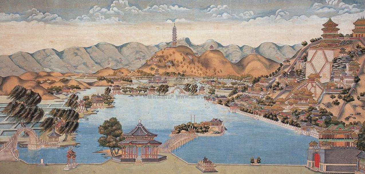 清朝乾隆皇帝继位以前,在北京西郊一带,建起了四座大型皇家园林。乾隆十五年(1750年),乾隆皇帝为孝敬其母崇庆皇太后动用448万两白银把这里改建为清漪园,形成了从现清华园到香山长达二十公里的皇家园林区。咸丰十年(1860年),清漪园被英法联军焚毁。